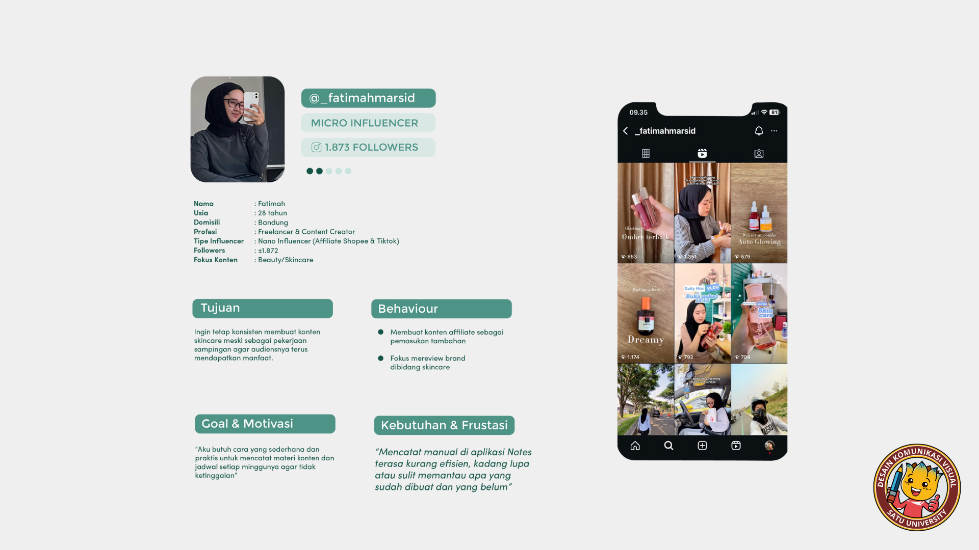 User persona berfungsi untuk mewakili tipe pengguna ideal berdasarkan hasil riset. Dalam proyek ini, dibuat tiga persona:
