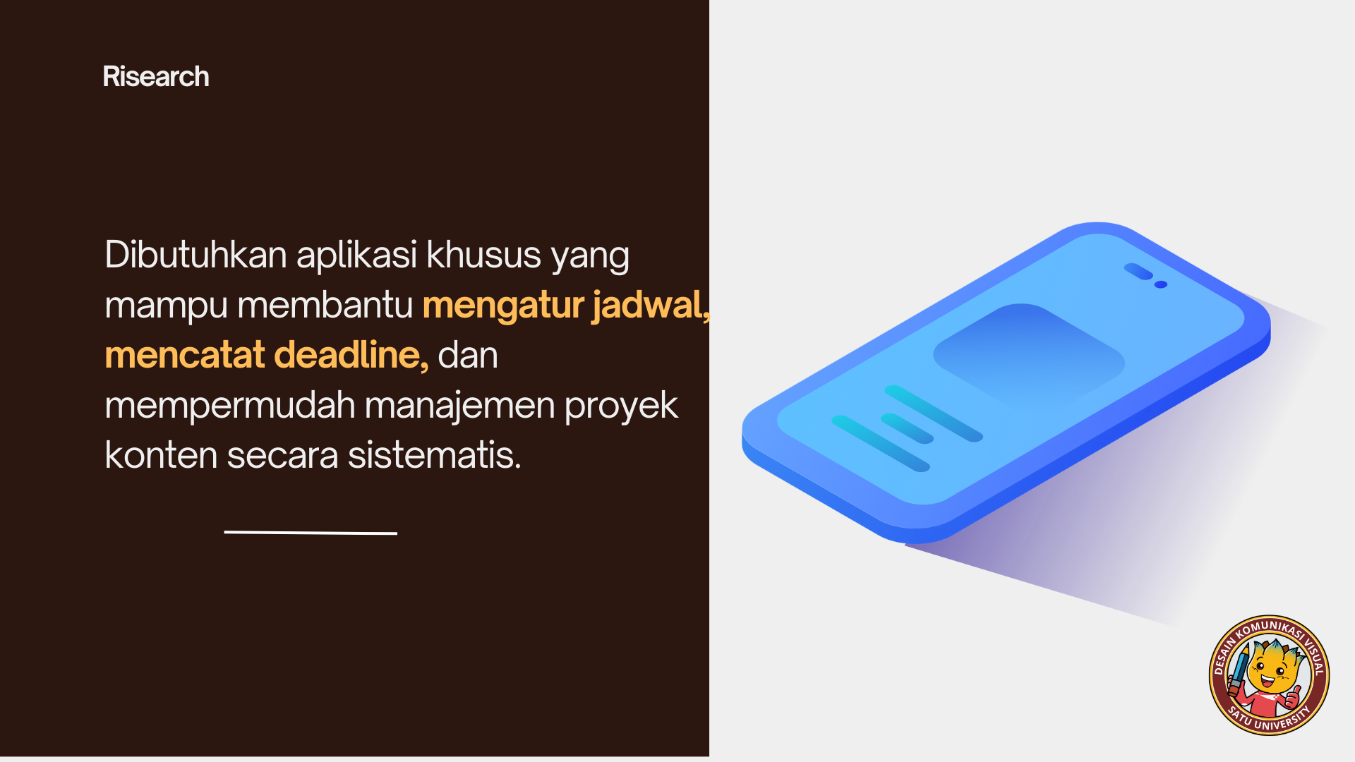 - Content creator kesulitan mengatur jadwal, ide, dan kerja sama endorsement secara terstruktur.