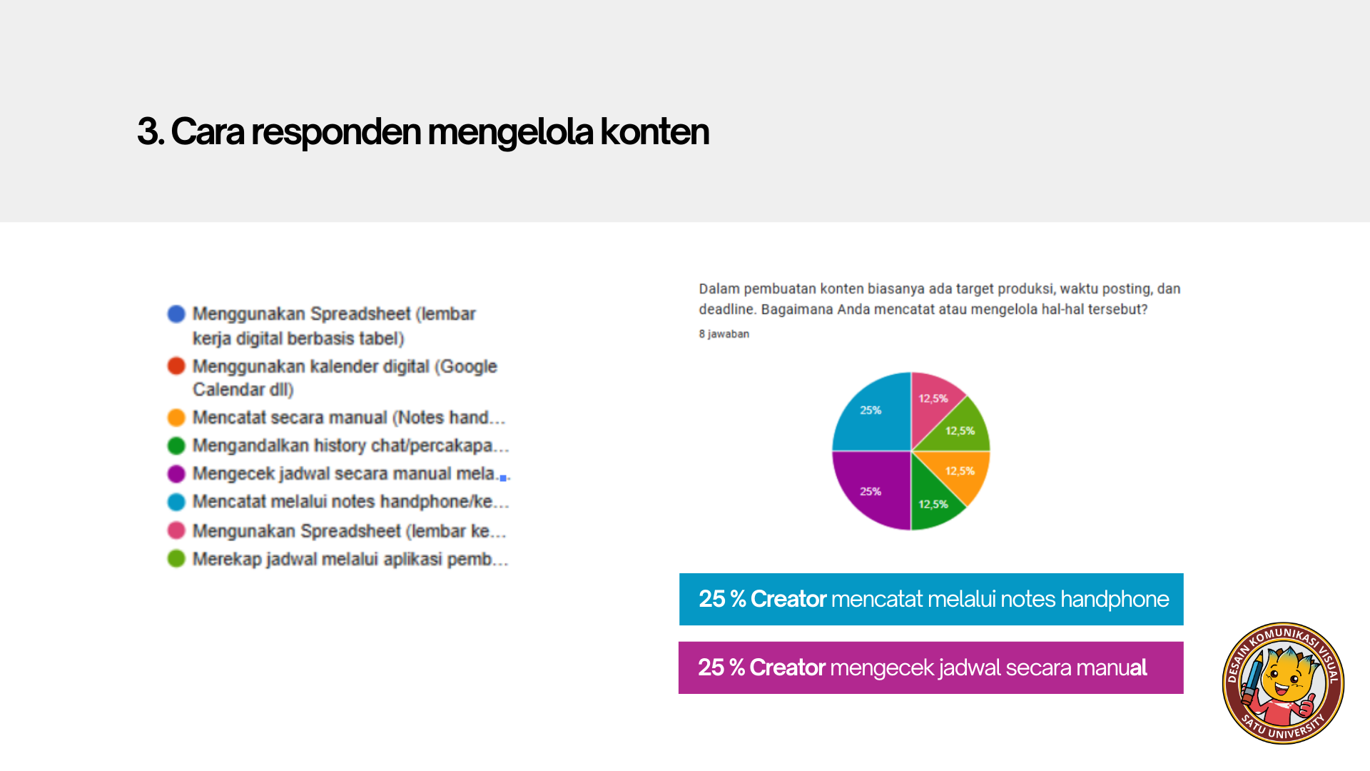 - Banyak dari mereka masih menggunakan metode manual seperti spreadsheet atau catatan ponsel. (Berdasarkan survei, 25% responden masih mengecek jadwal endorse secara manual.)