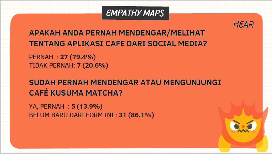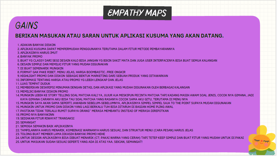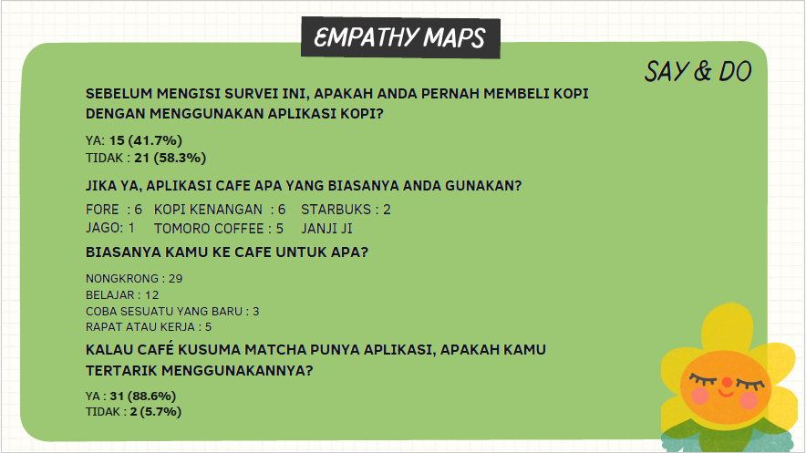 Dari seluruh proses, empathy map Kusuma Matcha dirangkum menjadi: