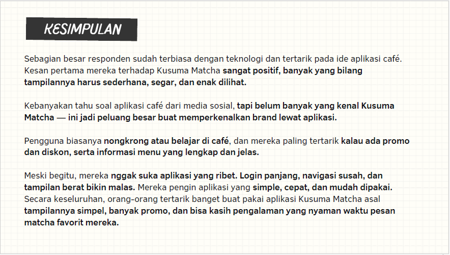 - Kesimpulan: Peran Empathy Map dalam Desain Aplikasi Kusuma Matcha