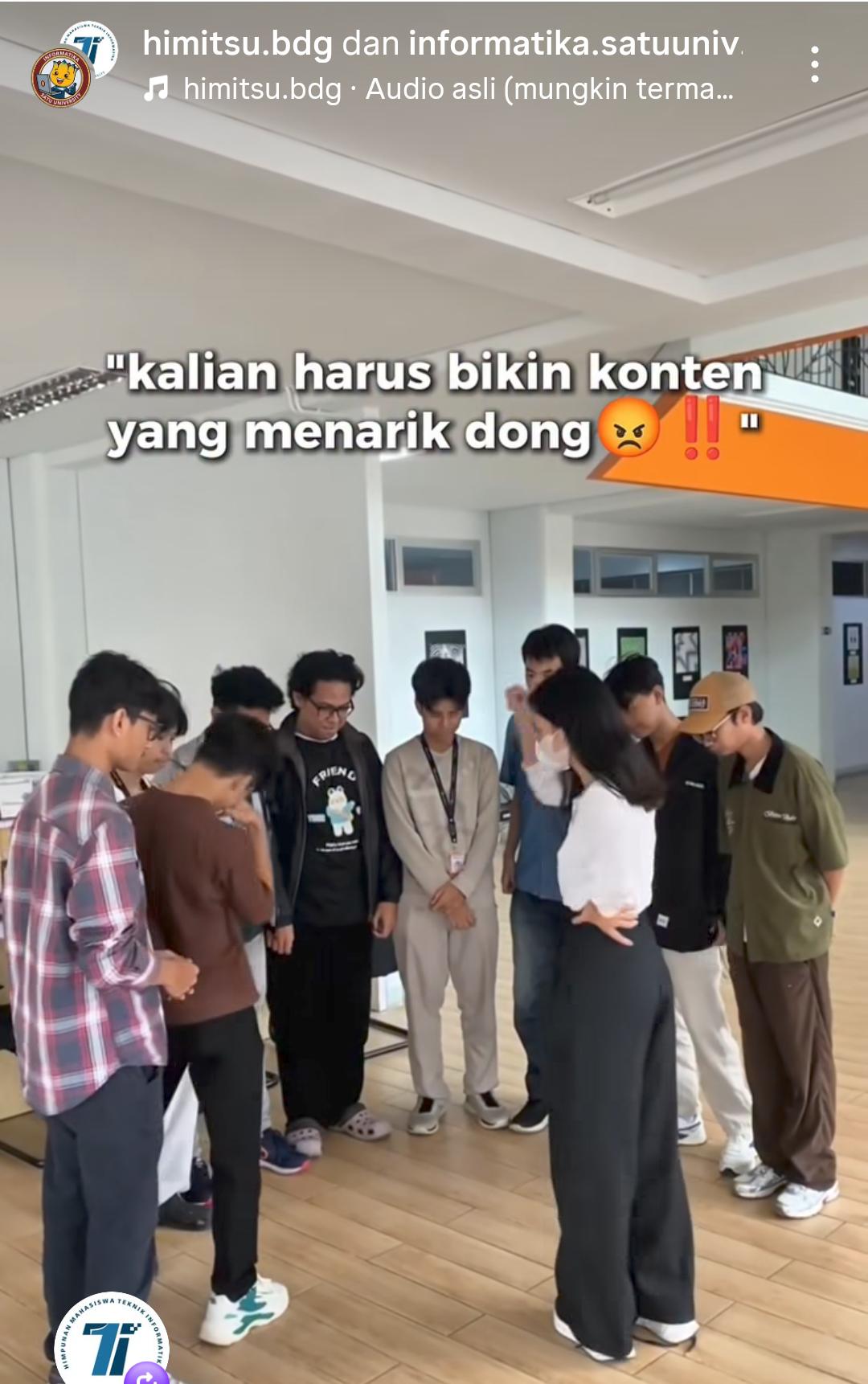 Mahasiswa/i Program Studi Informatika Satu University bersama HIMITSU (Himpunan Informatika Satu University) kembali menghadirkan konten kreatif yang menarik dan relate dengan kehidupan sehari-hari mahasiswa. Melalui video ini, mereka mengangkat situasi yang sering terjadi saat membuat konten—mulai dari tuntutan untuk selalu kreatif hingga proses di balik layar yang tidak selalu mudah.