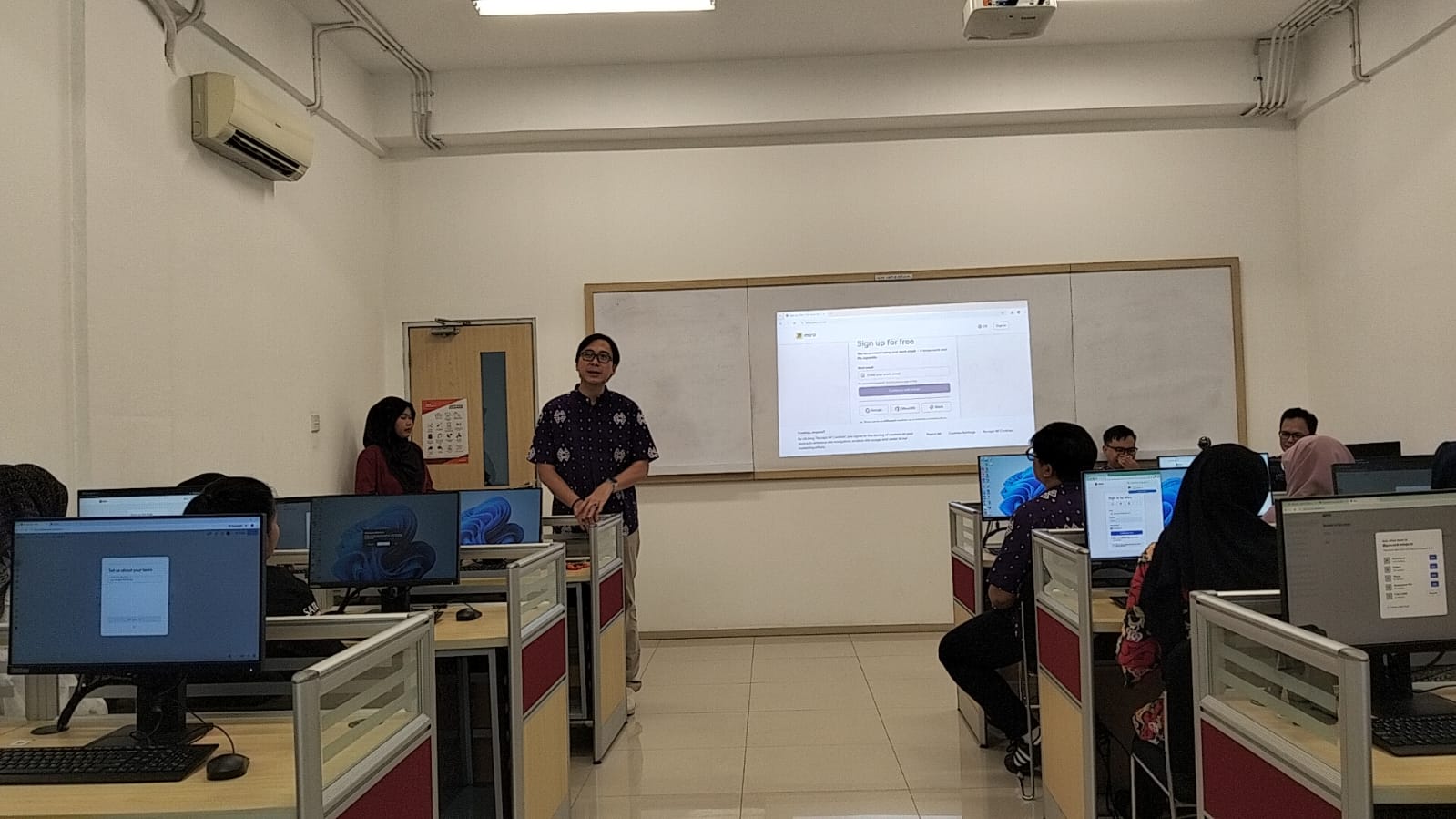 Para peserta juga mendapatkan kesempatan untuk mencoba langsung fitur-fitur MIRO, seperti pembuatan papan kerja digital, penggunaan sticky notes, serta kolaborasi secara real-time.